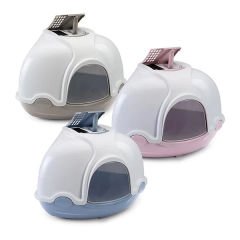 Çevre kirliliği ve kokuyu önlemek için özel tasarlanmış filtreli üçgen yapıya sahip kapalı kedi tuvaletidir.
